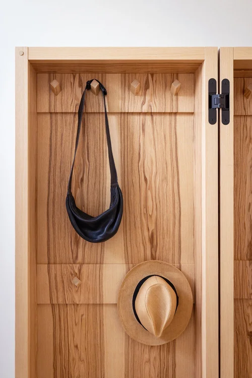 Long chats about the seating area and Mid-20th Century design, it was decided the style reference should come from a mutual love of George Nakashima – the two-piece English Elm sofas have been handmade from four large slabs joined in a simple, Japanese-inspired construction.